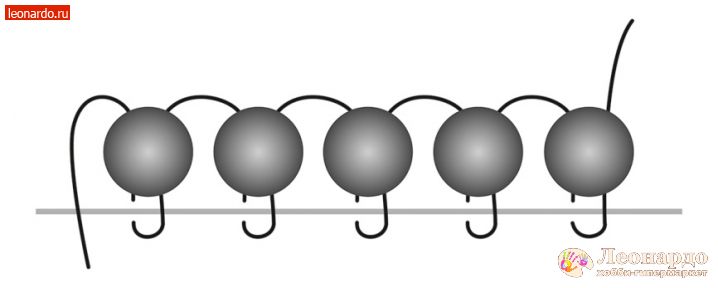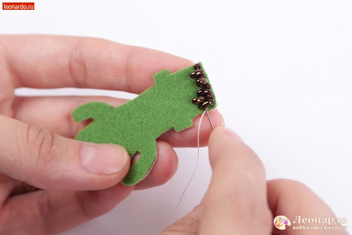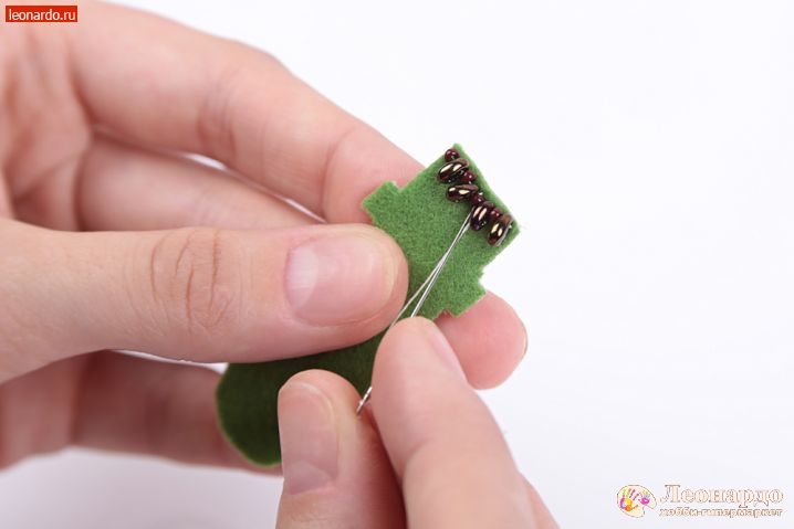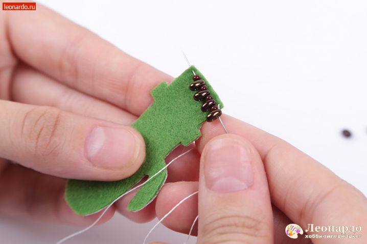 4. Чтобы бисерины не болтались, следует ещё раз пройтись иглой между каждой, чтобы они были плотно прижаты к фетру.
