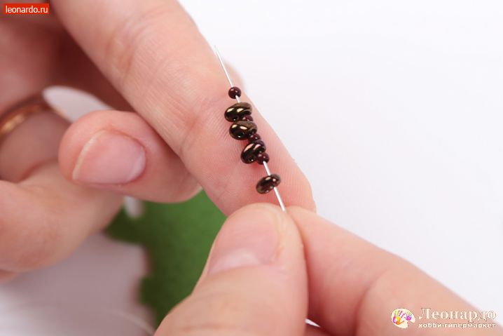 8. Далее, набрав 3-4 бисерины зеленого цвета, обвиваем граненую бусину, чтобы получился круглый элемент.