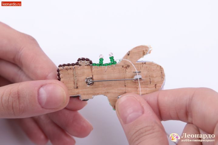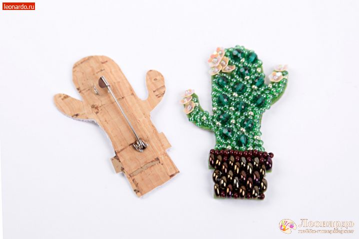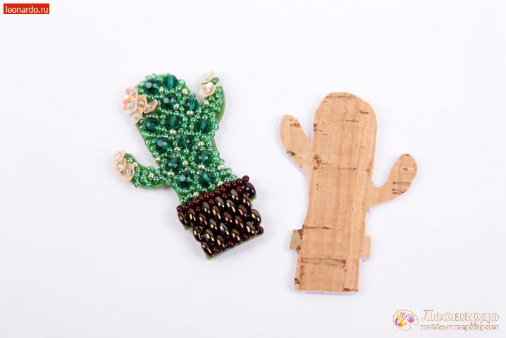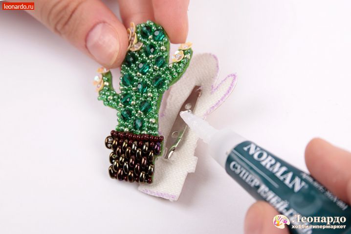 14. Пробковую заготовку приклеим к вышитому кактусу с помощью клея NORMAN (арт. SGN-001).