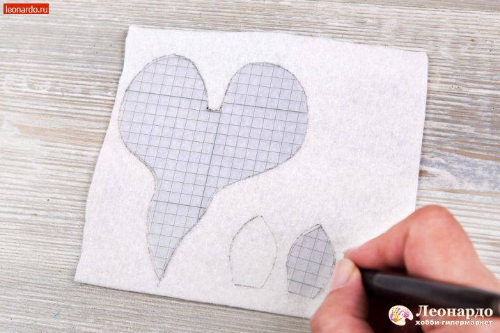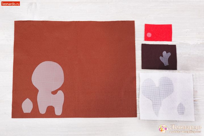 1. Вырезаем из пластика GAMMA (арт. PSM-02) лекала будущей игрушки. Раскладываем их на фетре GAMMA Premium.