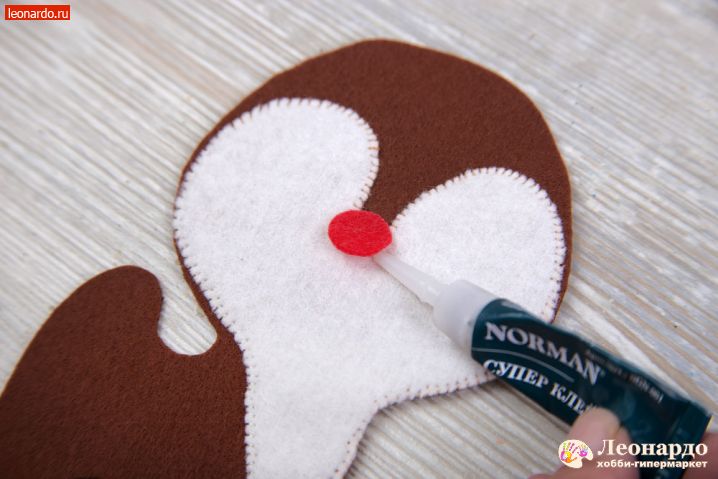 9. При помощи супер клея фиксируем носик оленёнка по центру мордочки.
