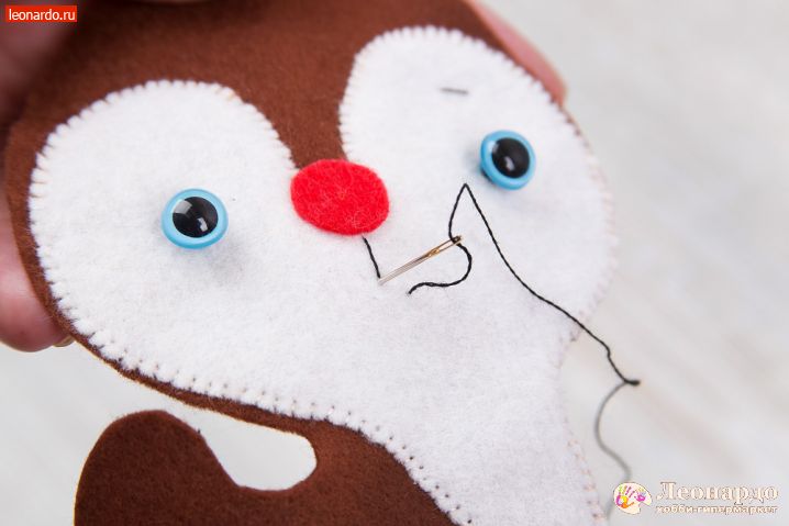 11. Вышиваем линию рта – делаем вертикальный стежок от края носика.