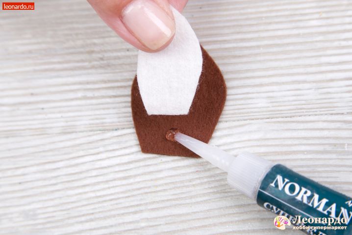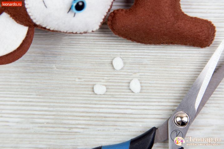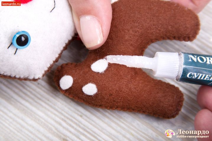 27. Последний штрих декора - «оленьи пятнышки». Для них из белого фетра вырежем три овала длиной 5-6 мм.