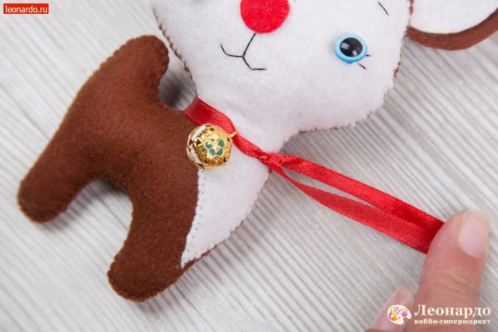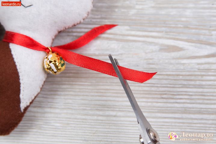 23. Бубенчик надеваем на ленточку и завязываем на шее оленёнка.