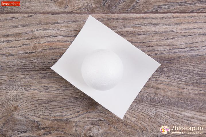 - квадрат из белого фоамирана Fiorico (арт. EVA, №01) со стороной примерно 12 сантиметров. Если шар имеет неровную, зернистую поверхность, ее можно исправить с помощью мелкой наждачной бумаги. В противном случае некоторые неровности могут проступить через туго натянутый фоамиран.