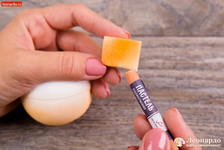 6. С помощью сухой художественной пастели VISTA-ARTISTA (арт. VASP-24) затонируем заготовку со стороны фоамиранового слоя. Для тестирования и нанесения цвета удобно воспользоваться поролоновым спонжем белого цвета. На нем хорошо виден «цвет лица» будущей куклы. Равномерно, способом тампования, нанесем тон на поверхность фоамирана.