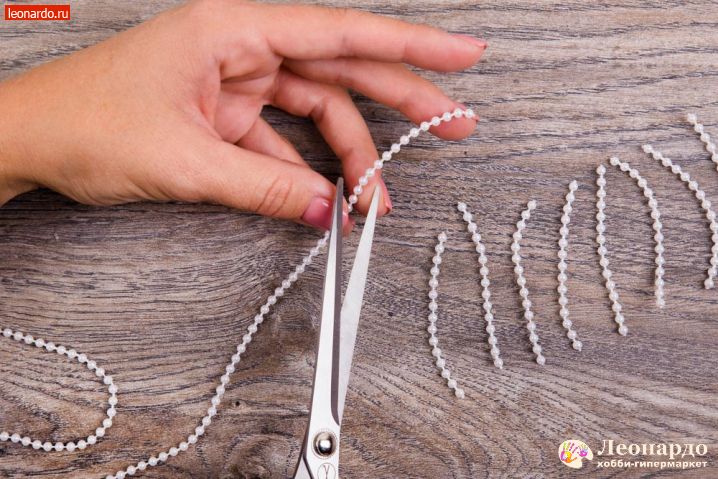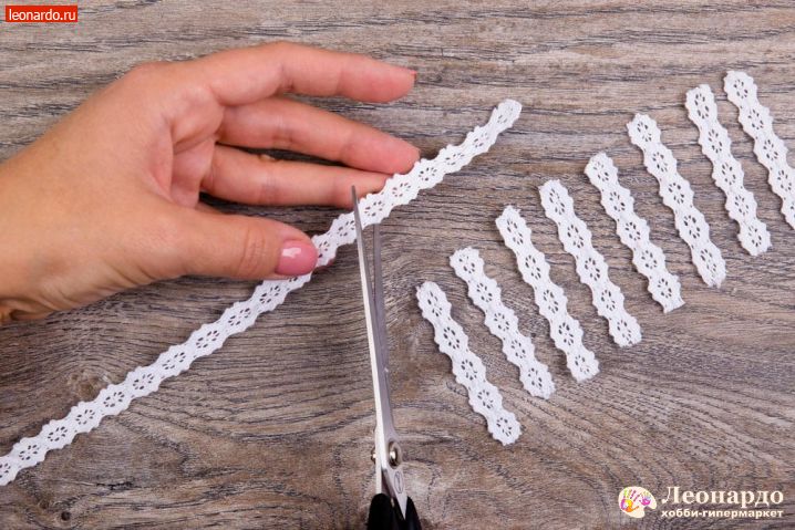 34. Из кружева и бусин на нитях Zlatka (арт. PSB-02 3 мм, №57 жемчужный) нарезаем полоски длиной 7-8 см.