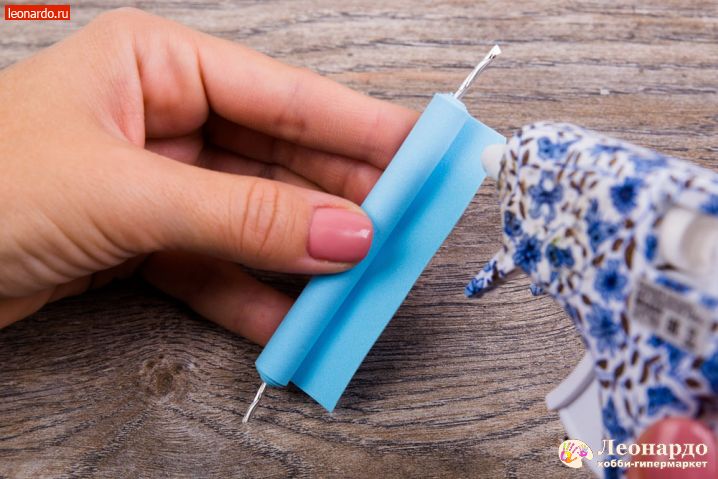 - из голубого фоамирана два прямоугольника 8х11 см (длина руки 8 см),