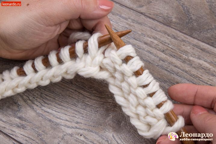 ряды делятся на лицевые (нечетные) и изнаночные (четные). В лицевых рядах рабочая нить находится за вязанием, в изнаночных – перед вязанием. Каждый ряд начинается и заканчивается кромочными петлями: первую петлю в ряду просто снимаем на спицу, не провязывая, а последнюю всегда вяжем изнаночной.