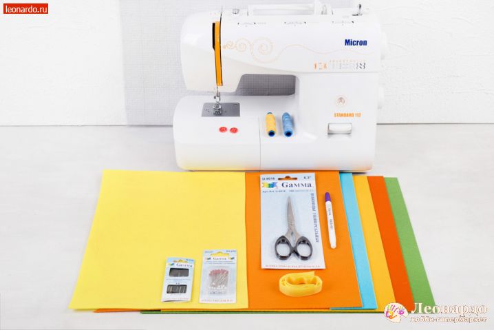 • круги и полоски из оранжевого, тёмно-оранжевого, жёлтого и зелёного фетра для декорирования.
