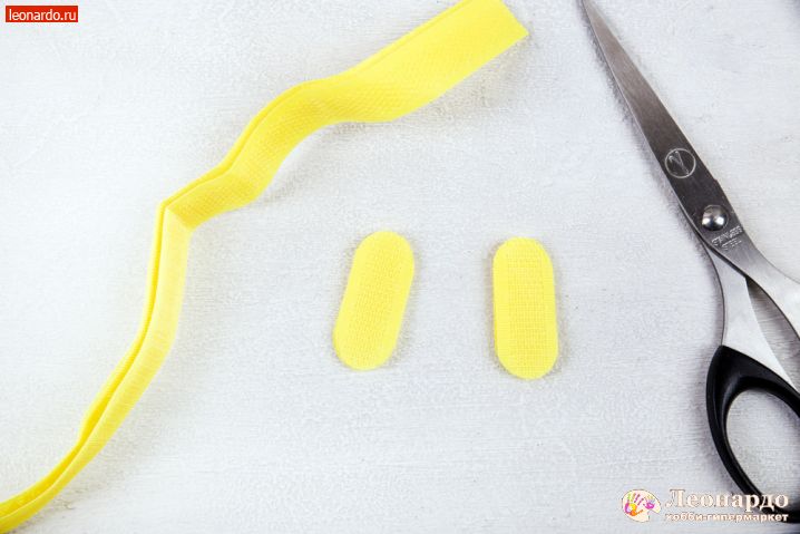 11. Из ленты-липучки жёлтого цвета GAMMA (арт. LG-16) отрезаем 2 отрезка длиной 4 см, края которых немного скругляем.