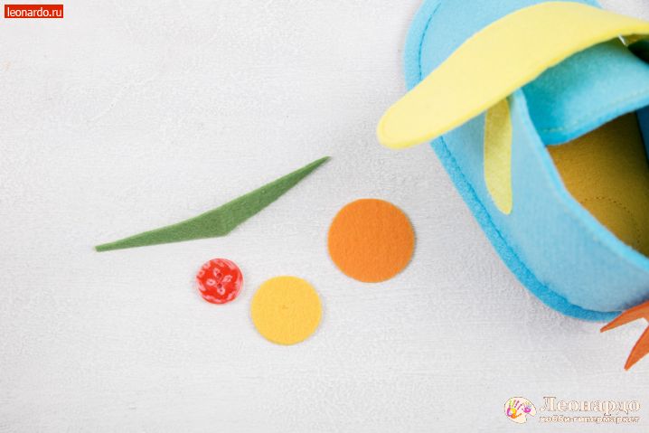 • 2 симметричные детали (левая и правая) из жёлтого фетра для подошвы;