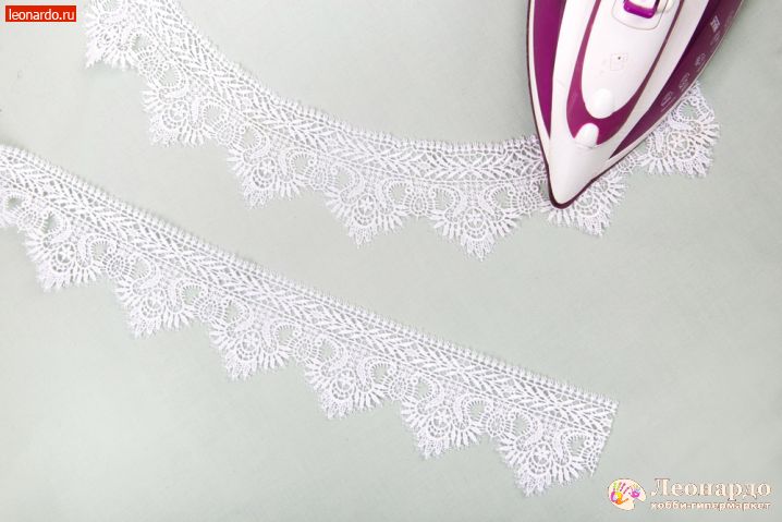 1. При помощи утюга один край гипюра GAMMA (арт. GGM-6002) оттягиваем, другой сутюживаем.