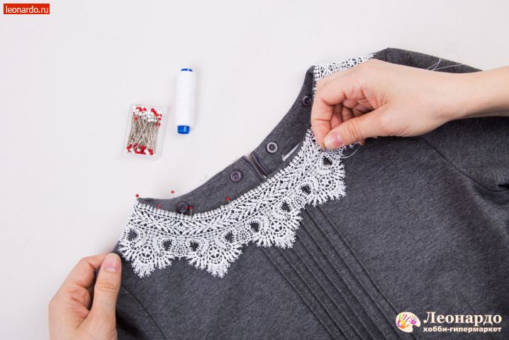 4. Пришиваем потайными стежками гипюр к горловине платья.