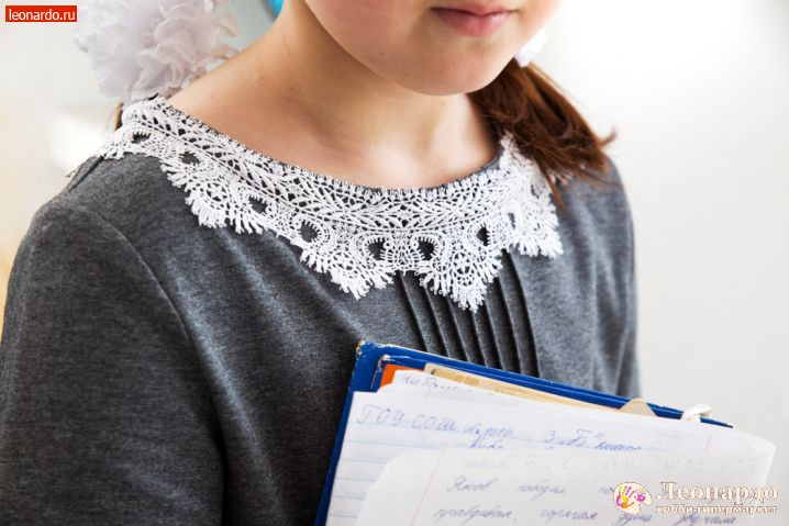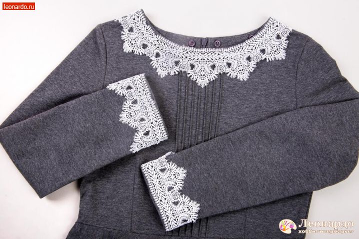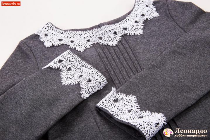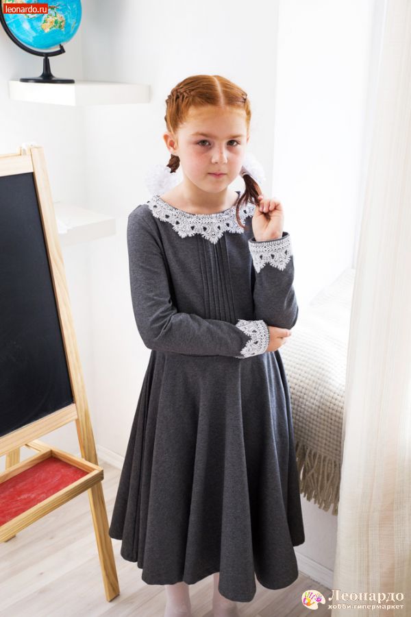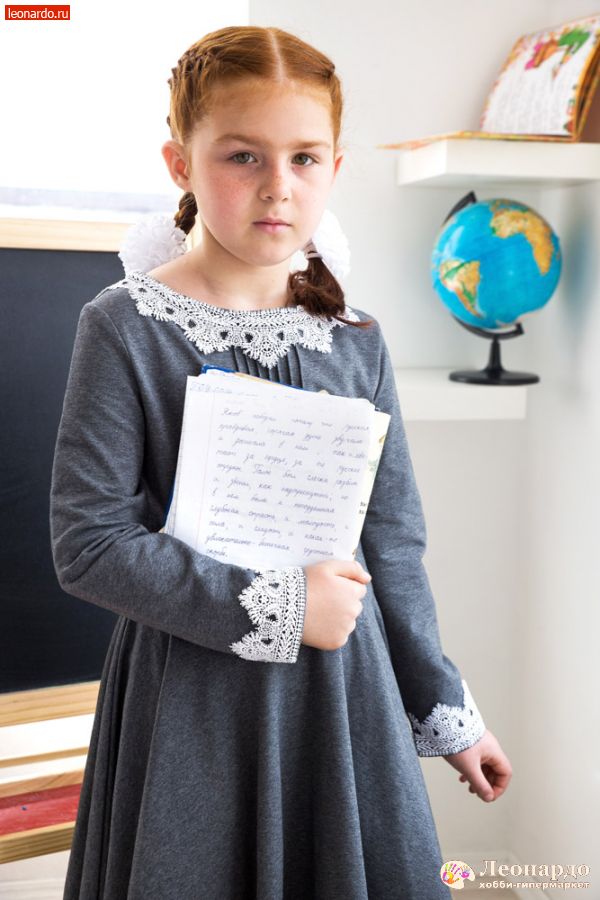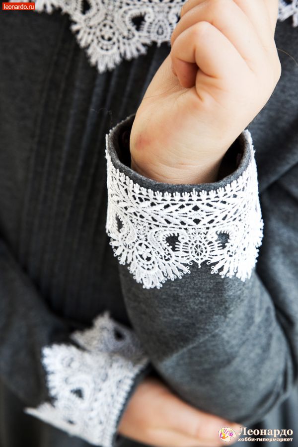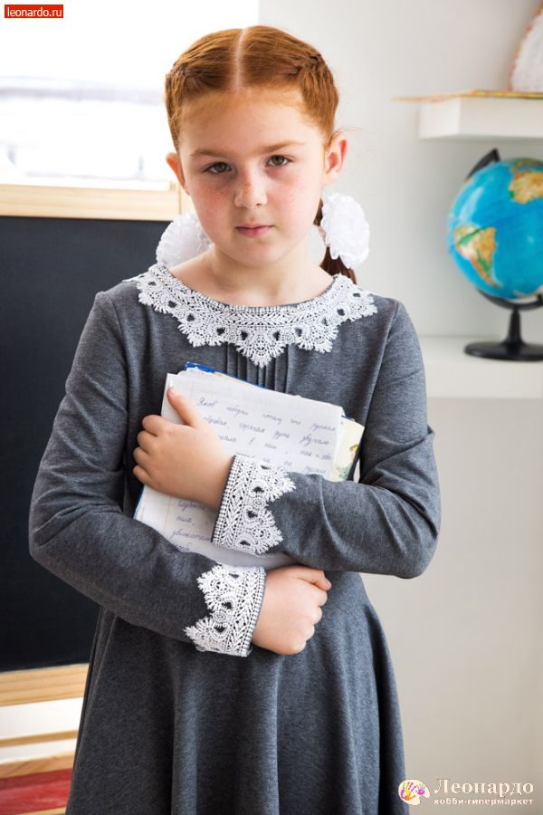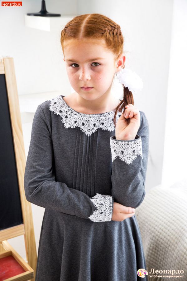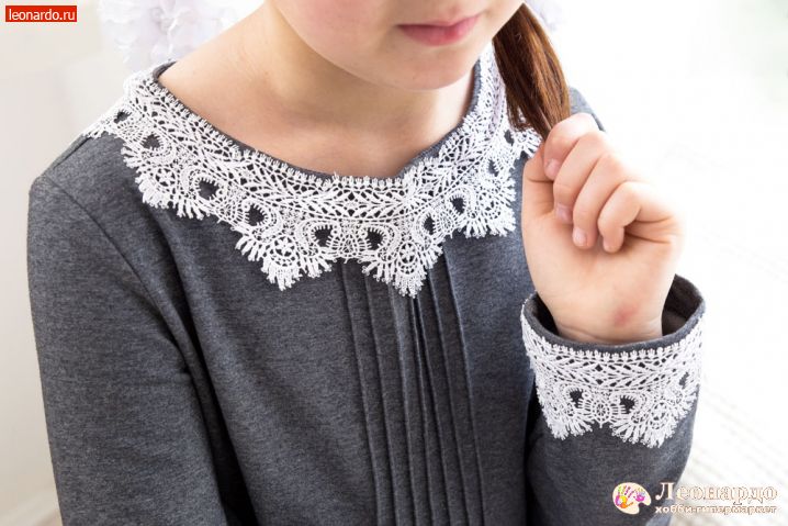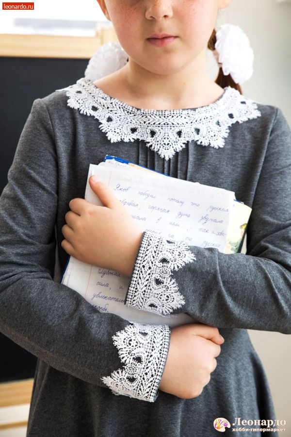 Даже строгое школьное платье можно сделать нарядным. В этом мастер-классе мы поделимся с вами интересной идеей – как серое платье украсить при помощи гипюра. Вы научитесь аккуратной отделке воротника и манжет. А изящный узор белого гипюра GAMMA создаст очень нежный образ для маленькой школьницы.