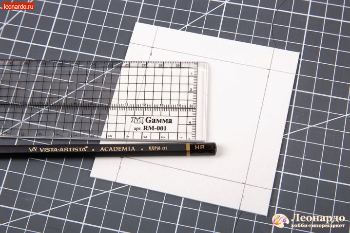 2. На двух из этих шести квадратов нарисуем карандашом VISTA-ARTISTA ACADEMIA (арт. VAPN-01, HB) рамочку с полями 1,5 см.