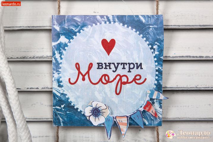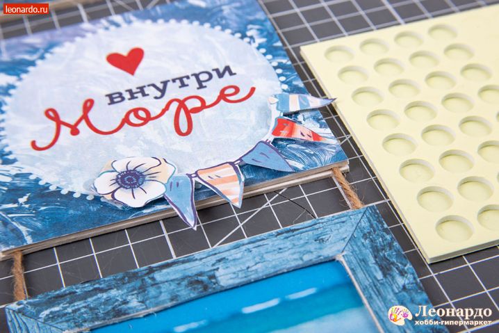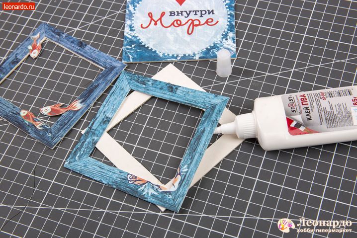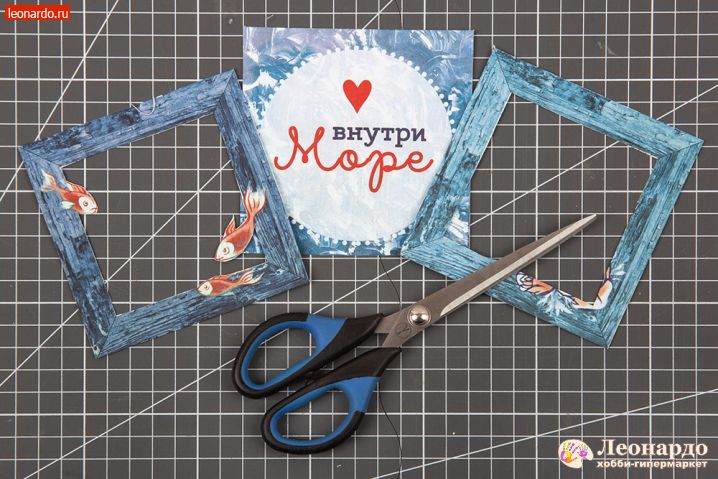 4. Из листа скрап-бумаги Mr. Painter (арт. PSR 190505 "Море") вырежем две рамочки и карточку с надписью «Море внутри».