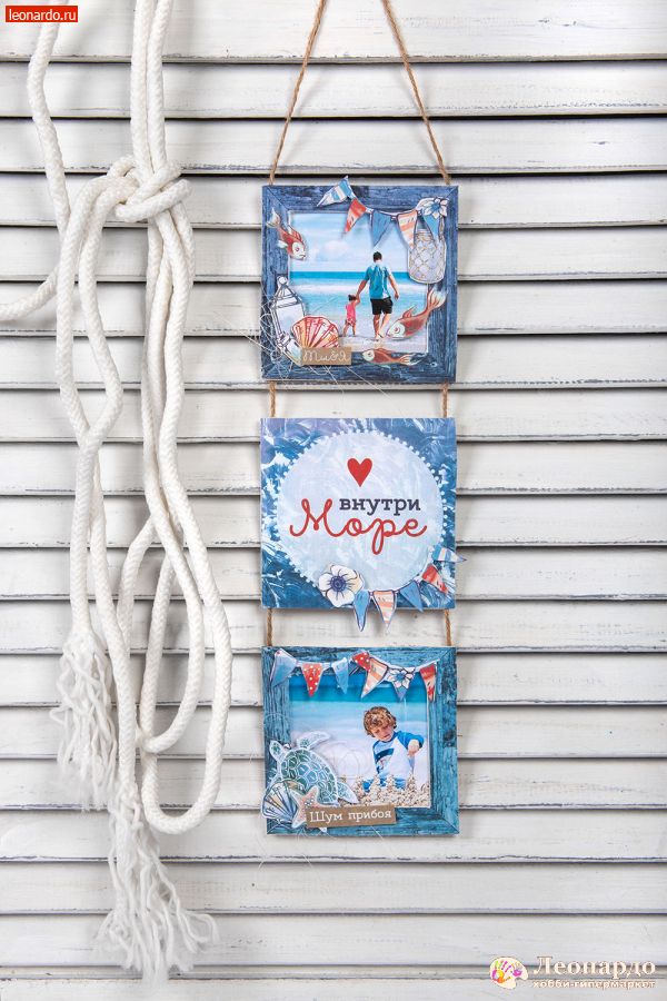 Вспоминая о теплом лете хочется сохранить максимально красиво. Предлагаем вам смастерить комплект из трёх рамок для фотографий в морском стиле из коллекции бумаги для скрапбукинга Mr. Painter «Море».