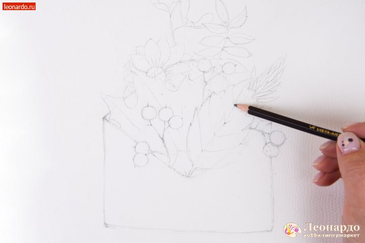 1. Легкими движениями нанесём предварительный карандашный рисунок. Используем карандаш VISTA-ARTISTA ACADEMIA (арт. VAPN-01). Поместим рисунок так, чтобы ему было уютно на листе. Сверху и снизу должно оставаться свободное пространство.