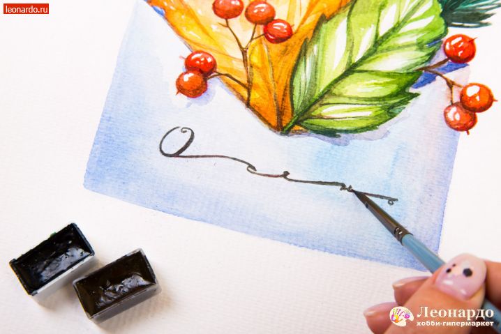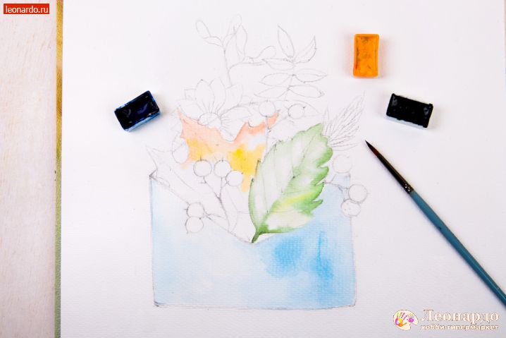 11. Если конверт кажется вам слишком светлым, можно сделать поверх еще один слой, заранее намочив его водой или набирая чуть больше воды на кисти.
