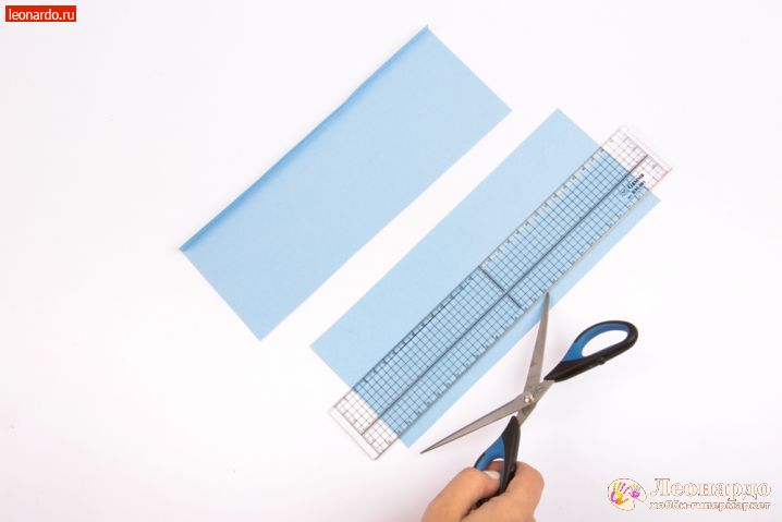 3. Вырезаем начерченные прямоугольники. По линии для склейки (отступ в 1 см) проводим ножницами GAMMA, слегка царапая поверхность. Делаем загиб по этой линии.