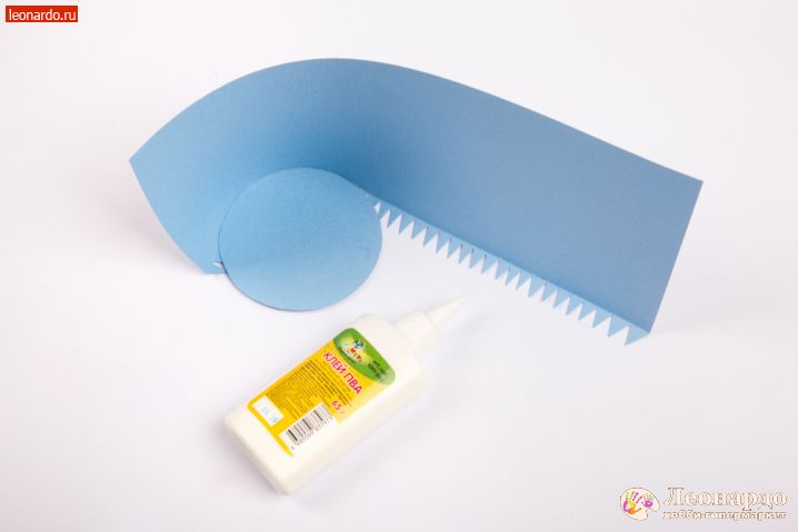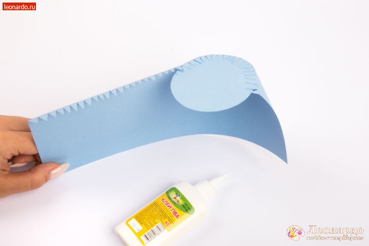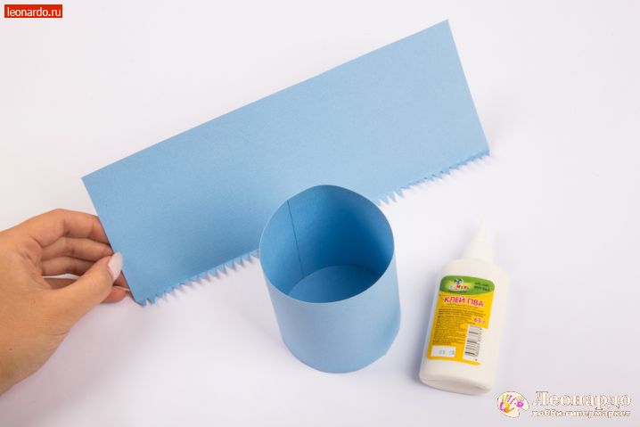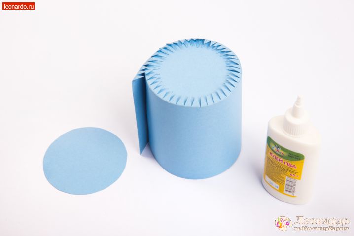 5. Приклеиваем одну из стенок на круг. Клей добавляем постепенно, аккуратно формируя ровный цилиндр.