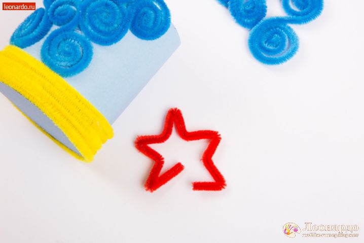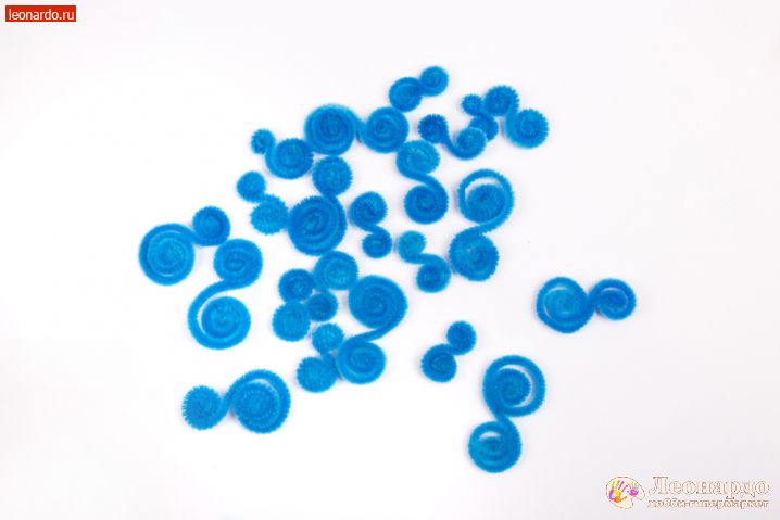 9. Из синего шенила Hobbius формируем «волны» разного размера, как показано на фото. Для удобства и разнообразия можно разрезать полоску шенила пополам или мельче.