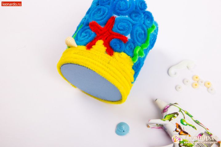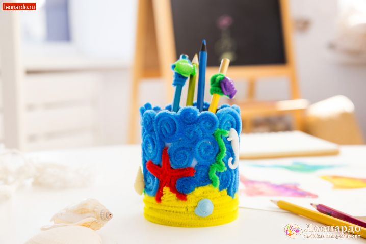 Изделия из шенила - это, как правило, смешные детские игрушки и фигурки. Но мы предлагаем необычный подход к материалу. Используя картонную основу, мягкую проволоку и детали из бусин, вы сделаете яркий декор для обычной карандашницы – а заодно и саму карандашницу!