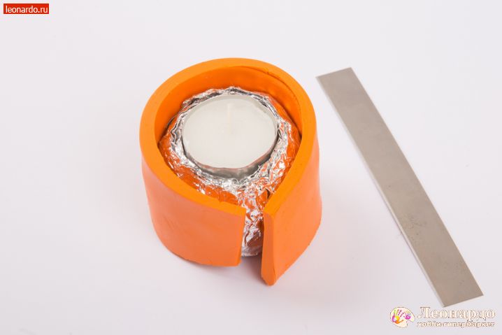 6. Прижимаем края глины друг к другу. Стеком Fiorico (арт. FIO-S/01) сглаживаем стык, чтобы он стал незаметным. Верхний край закругляем близко к свече, внизу формируем донышко.
