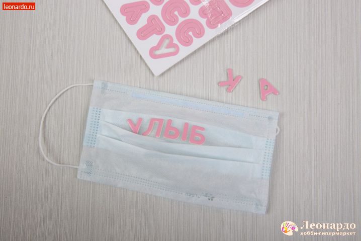 1. Поочередно вынимаем подходящие буквы из картонной основы, снимаем защитный слой и приклеиваем на маску.