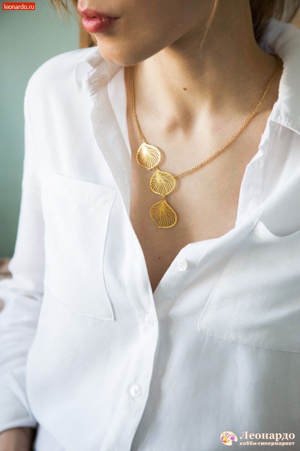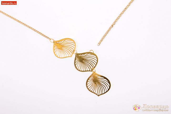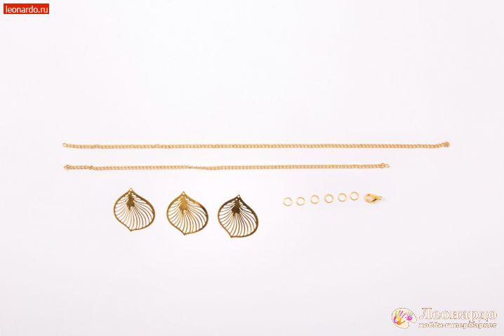 2. С помощью инструментов Micron к цепочкам Zlatka (арт. FCI-06 №01 под золото) за кольца подвешиваем филигрань из набора Zlatka (арт. FDP-003) «листочек». Филигрань - один из древнейших видов художественной обработки металла. Благодаря тонкости и нежности украшения с использованием филиграни выглядят всегда неповторимо и оригинально.
