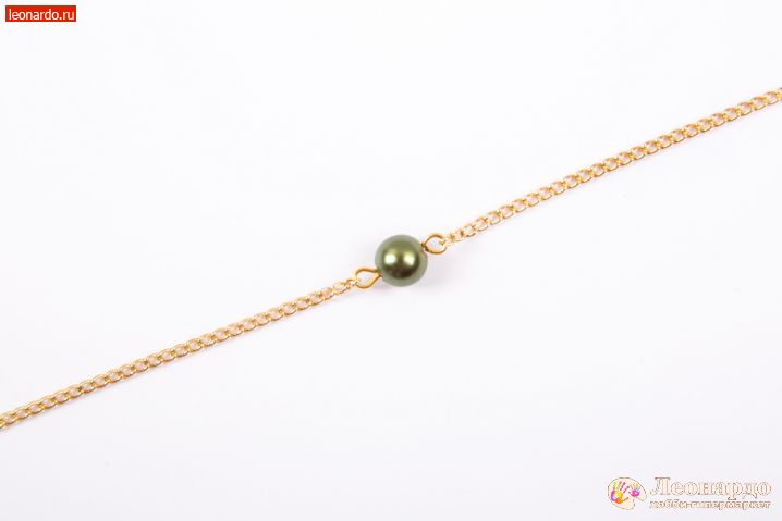 4. Берем третий отрез цепочки и на один конец устанавливаем штифт с петлей Zlatka (арт. DC-102). На штифт вдеваем пластиковую бусину Zlatka (арт. PB-2)