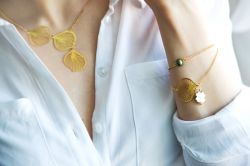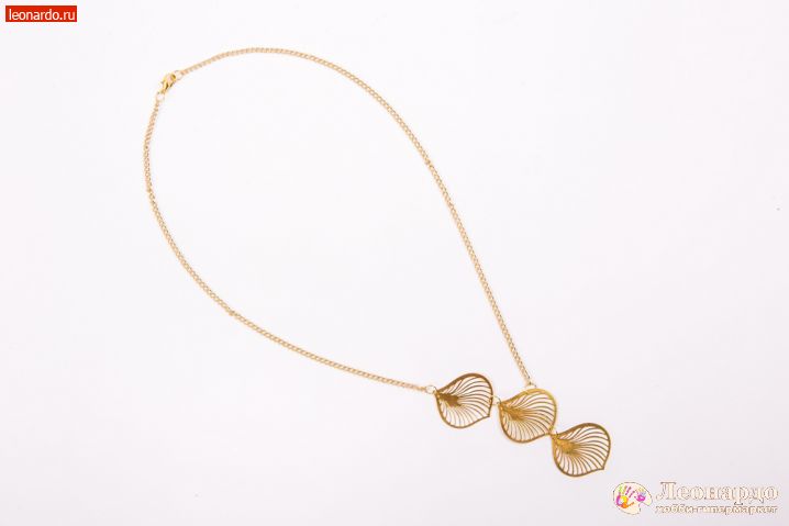 10. Конец цепочки Zlatka размером 20 см соединяем с первым листочком у основания. А цепочку размером 23 см, соединяем со вторым листочком как на фото
