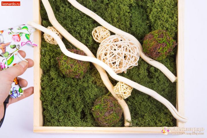 3. Заполним заготовку мхом Blumentag (BMSP-50B), фиксируя его клеевым пистолетом.