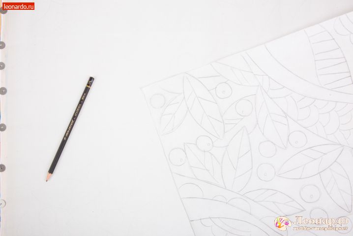 ВАЖНО! Эскиз должен быть в натуральную величину и нарисован зеркально от того изображения, что мы хотим получить. Рисунок переводим на шелк с помощью простого карандаша.