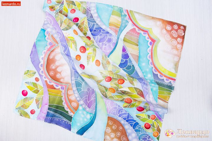 ВАЖНО! Краска фиксируется только высокой температурой - t 180. Прогладить нужно весь платок, не пропустив даже маленького кусочка росписи.