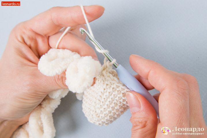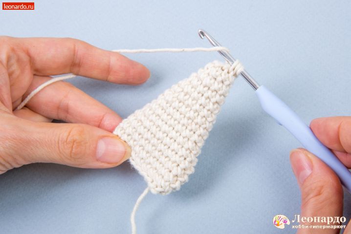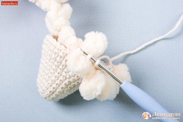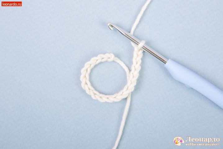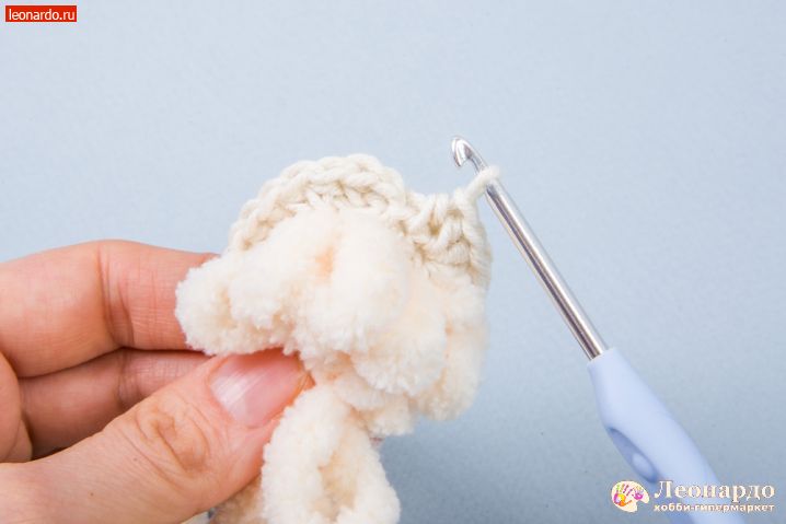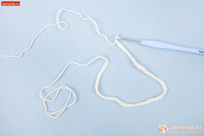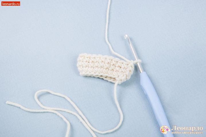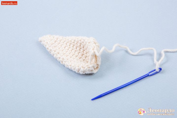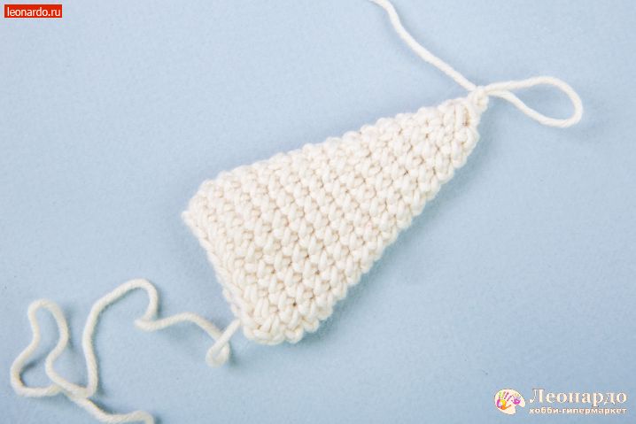 29. Для ушей набираем цепочку 19 вп, оставив нить примерно 20 см для пришивания детали к голове.