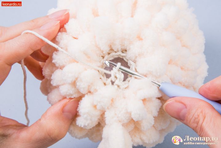 19. 4 ряд вяжем с петлистой пряжей 24 столбика.