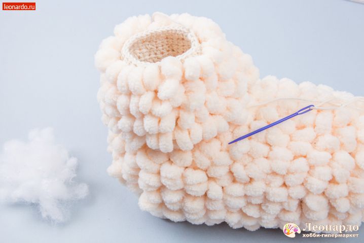 38. Оставляем нить примерно 30 см для пришивания, очень плотно набиваем деталь.