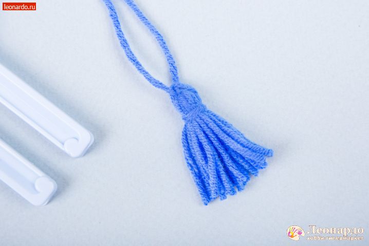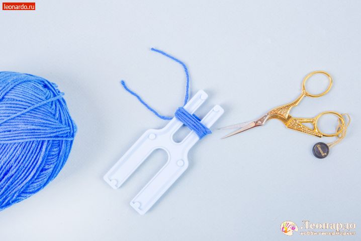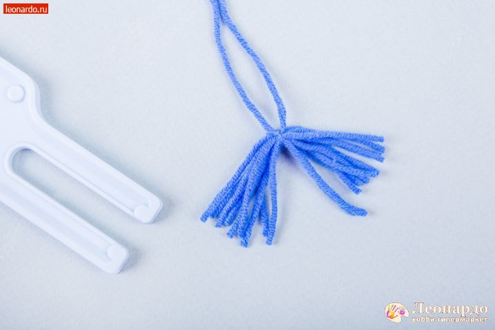52. Делаем кисточки: отрезаем нить 7-8 см, вкладываем ее в углубление на узкой части вилки GAMMA (арт. PMP). Наматываем нити для кисти.