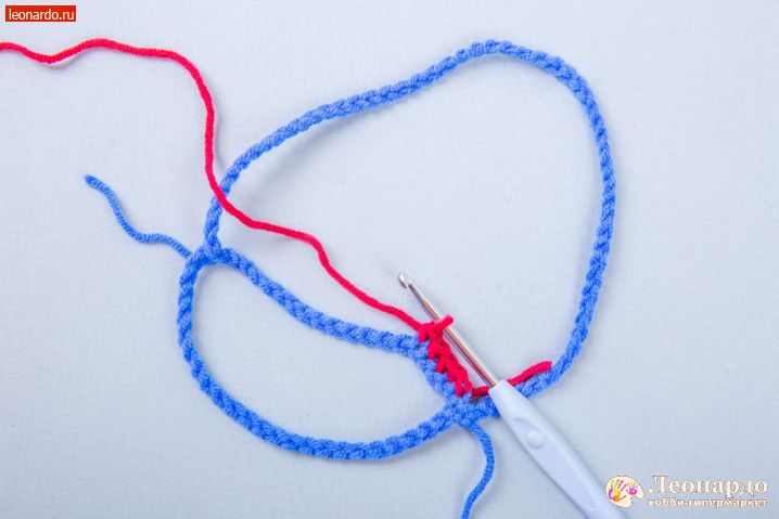 6. Крючок вводим как обычно, подхватываем рабочую нить и провязываем все три нити на крючке за один раз.