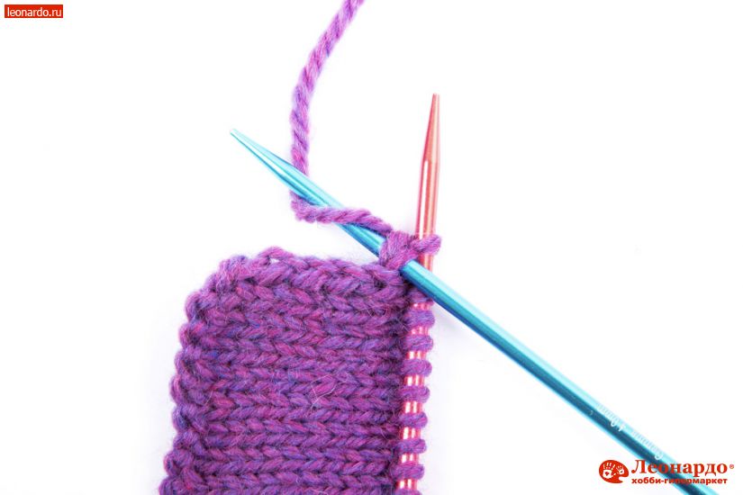 2. Вяжем лицевой гладью. Техника заключается в чередовании рядов, провязанных лицевыми и изнаночными петлями. В случае необходимости также смотрите у нас на сайте уроки по вязанию лицевыми и изнаночными петлями.