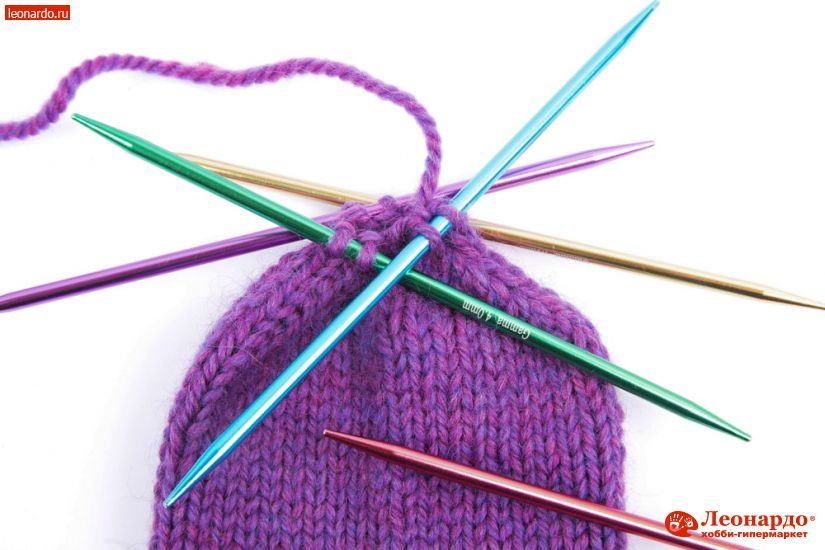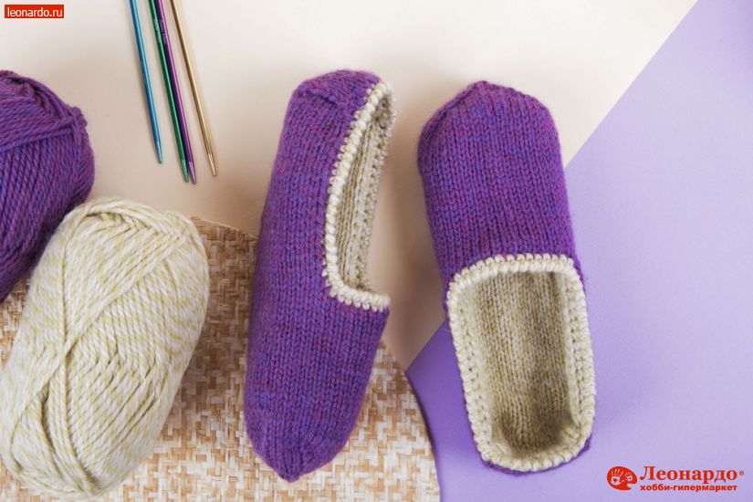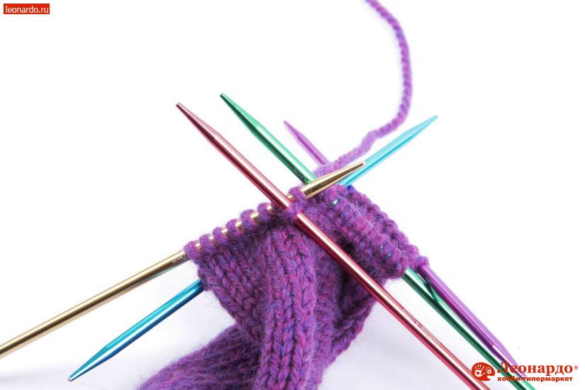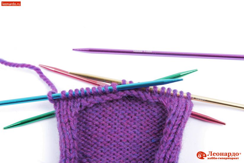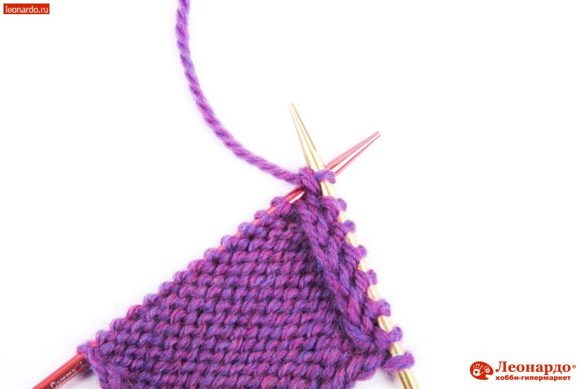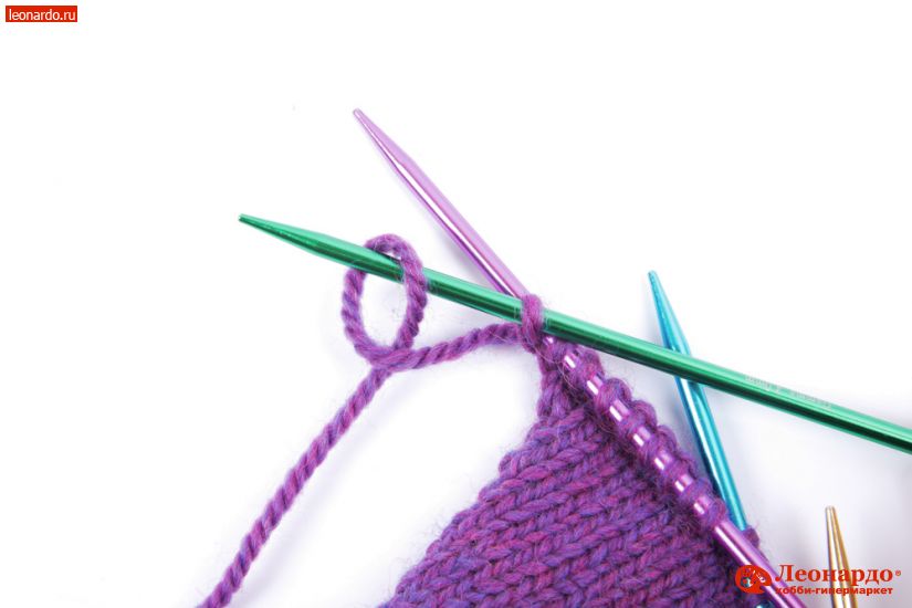1. Начинаем вязать внешнюю часть тапочек из пряжи Adelia ZOLTAN сиреневого цвета: набираем на две цветные спицы GAMMA (арт. CKN5) 14 петель. Технику набора петель можно посмотреть в разделе «База знаний» на сайте «Леонардо».