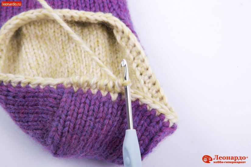 21. Примеряя тапочку на ногу, довязываем до момента убавления (в нашем случае 32 ряда).