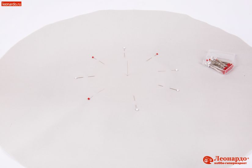 4. С помощью других булавок фиксируем положение всех трех деталей. Скалываем ткань вокруг донышка.