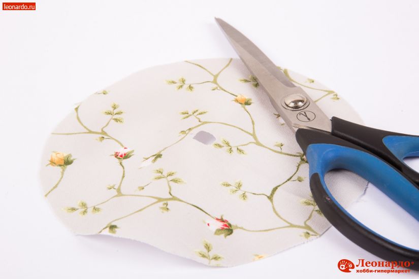 Чтобы выкроить круг, складываем ткань пополам, отмечаем на сгибе центр. От центра делаем несколько отметок радиусом 25 или 7,5 см в зависимости от выкраиваемой детали. Затем соединяем полученные отметки одной линией и вырезаем по ней круг.
