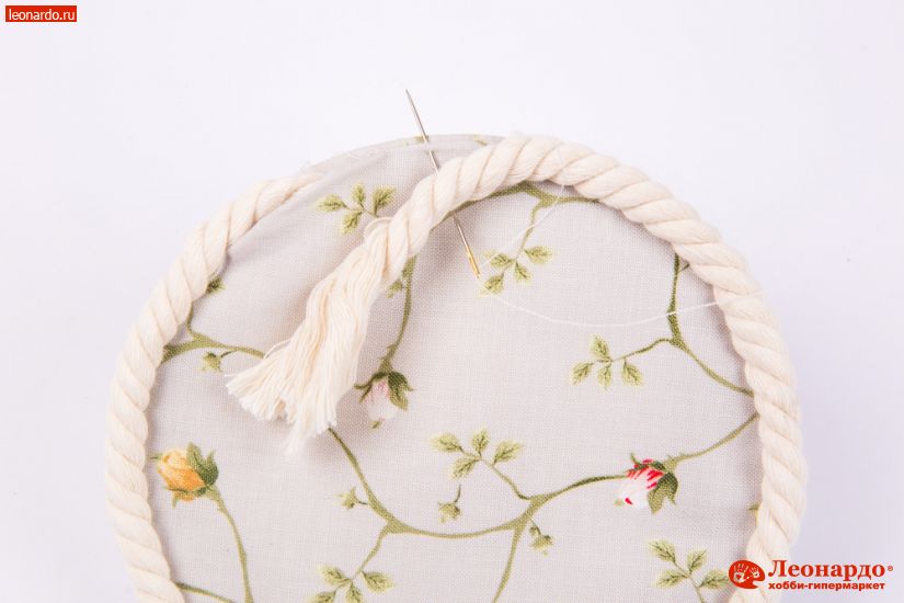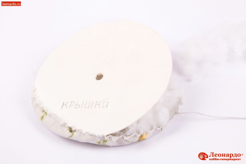 24. Стягиваем строчку. Если крышка недостаточно набита, можно через отверстие аккуратно добавить синтепух.