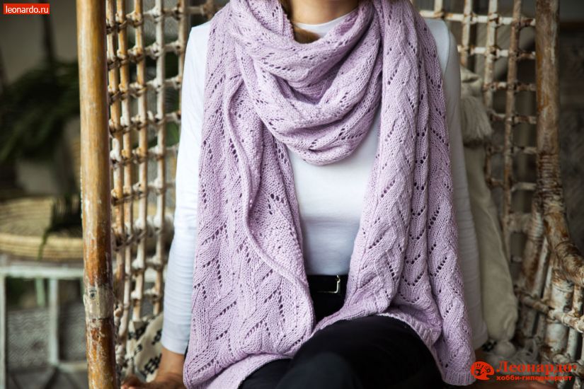 На палантин ушло 13 мотков пряжи ALPINA "SLAVIC" 70% вискоза, 30% шерсть 10 х 50 г 140 м ± 7 м (№03 сиреневый)