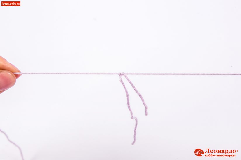 Далее берем кончик от другой нити, пропускаем его под первую и также завязываем узелок.