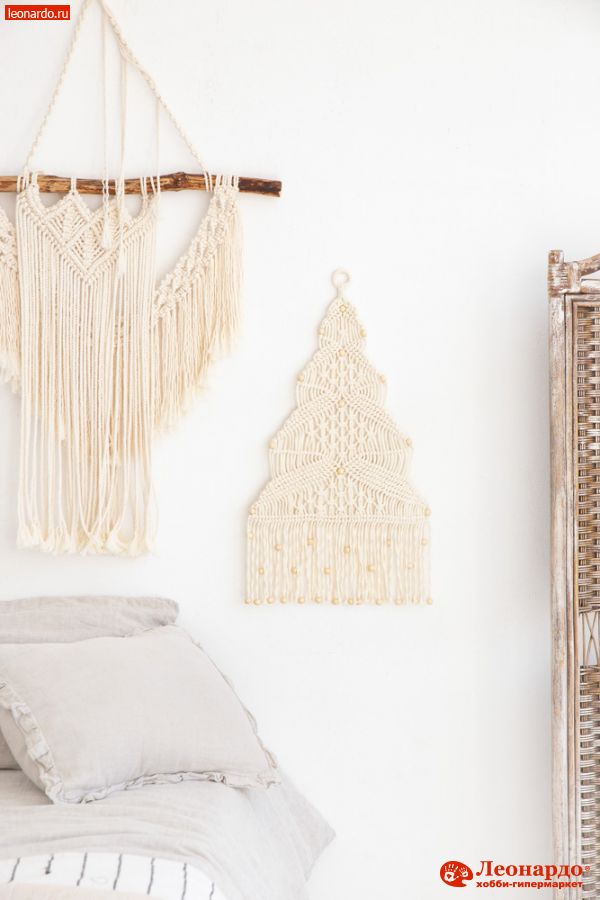 Порадуйте себя чудесным праздничным декором ручной работы! Панно отлично впишется в любой интерьер, но интереснее всего будет смотреться на даче. Оно также подойдёт для украшения входной двери в качестве альтернативы традиционному новогоднему венку. Изящная ёлочка из воздушной пряжи ARACHNA, выполненная в технике макраме, создаст в доме уют и подарит хорошее настроение!